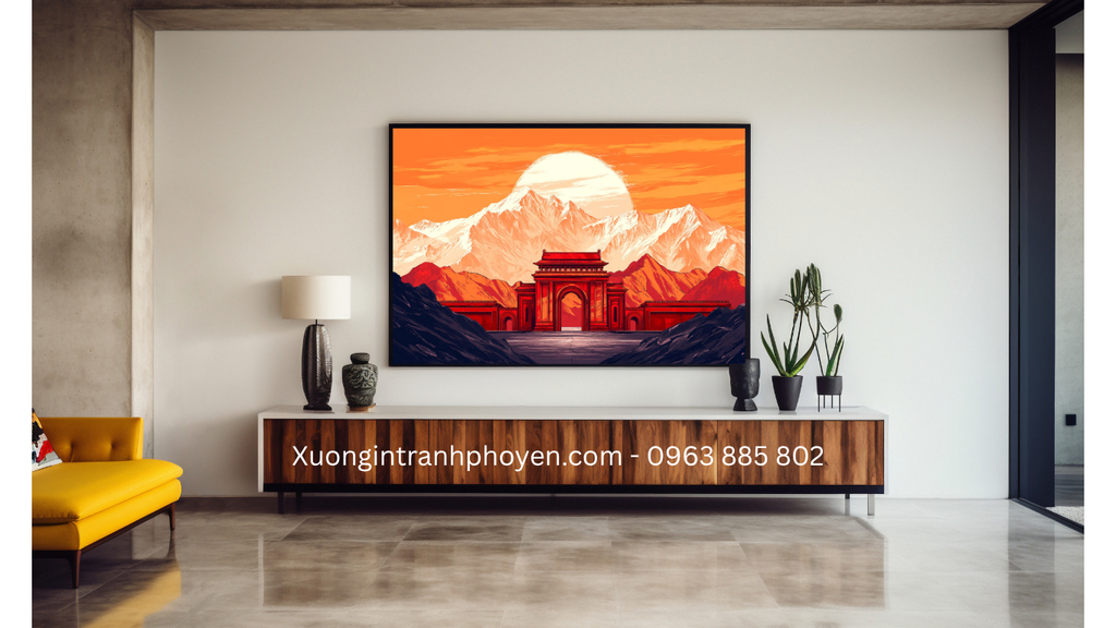 • Ý nghĩa: Phòng khách là trung tâm khí vận, tranh nên mang năng lượng mạnh, rực rỡ, tạo sự ấm áp và thu hút tài lộc.