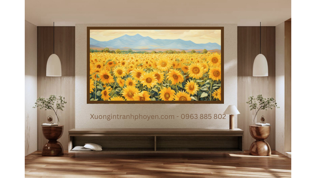 • Ý nghĩa: Phòng khách là trung tâm khí vận, tranh nên mang năng lượng mạnh, rực rỡ, tạo sự ấm áp và thu hút tài lộc.