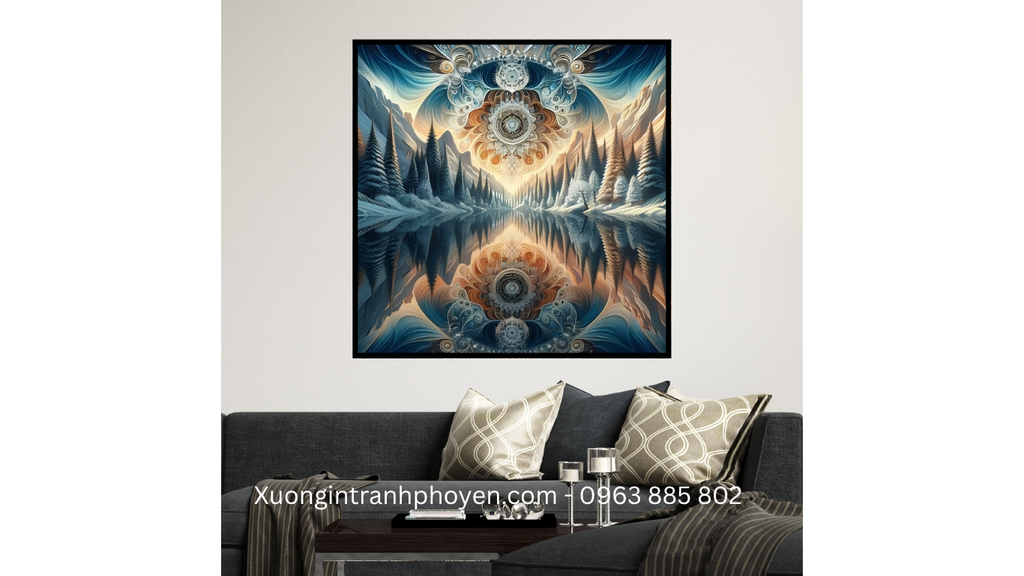 • Tranh núi non hùng vĩ: Biểu tượng của sự vững chãi, tương sinh cho mệnh Kim.