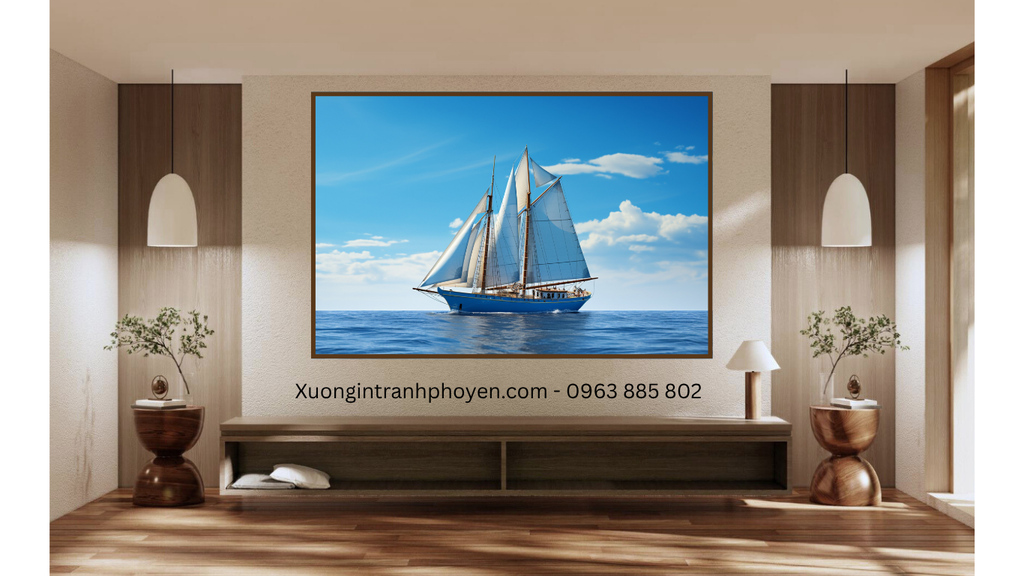 • Tranh thuyền buồm trên sóng nước: Thủy sinh Mộc, hỗ trợ công danh.