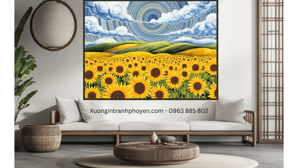 • Tranh đồng quê, cánh đồng lúa: Tông màu vàng nâu, mang lại cảm giác ấm cúng, thịnh vượng.