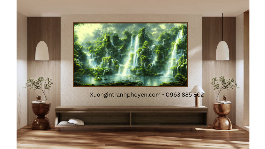 • Tranh phong cảnh mờ ảo sương sớm: Màu sắc nhẹ nhàng, tránh tranh nước chảy mạnh gây bất an.